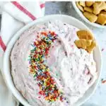 I’d recommend stirring your ingredients together without the sprinkles first, though. There’s a chance that the sprinkles will dye the rest of the dip with their coloring.