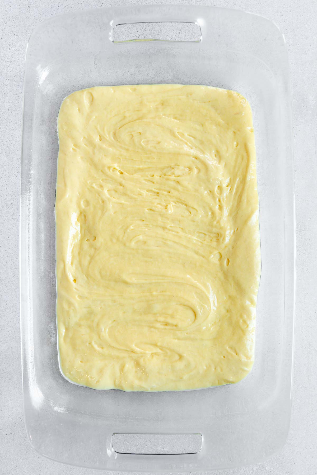 - Layer it up: Pour half the cake batter into a greased 9×13″ pan, sprinkle the cinnamon sugar evenly over the top, then finish with the rest of the batter. Gently spread to cover.