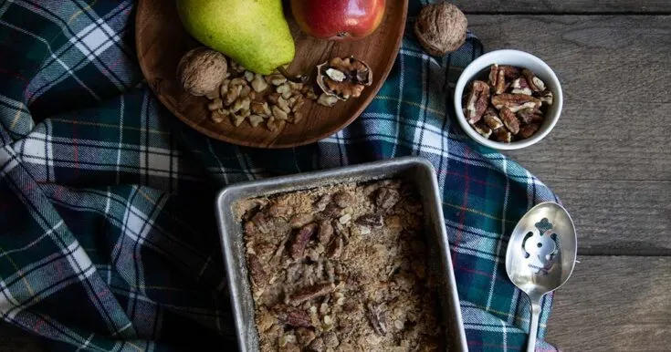 This Apple and Pear Crisp has a warmed spice filling and oat and pecan topping!