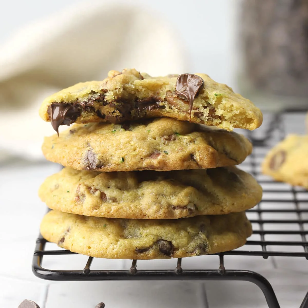 These Zucchini Chocolate Chip Pecan Cookies are perfectly chewy and delicious with the combination of chopped pecans and chocolate chips.